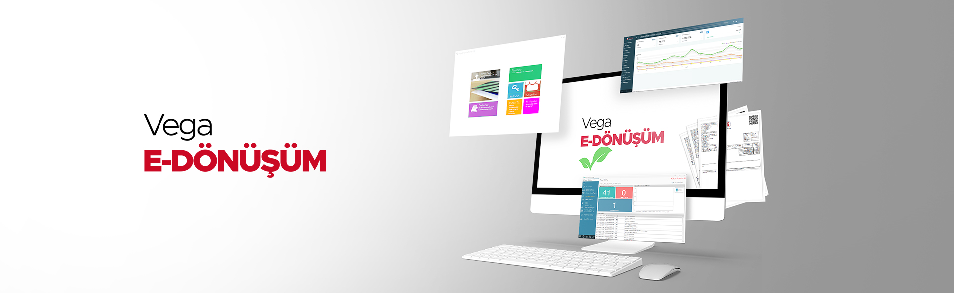 Dijitalleşen dünyada, artık kamu kurumları da dijital uygulamalar üzerinden işlerini yürütmektedirler. Bu dijital dönüşüme e-Dönüşüm adı veriliyor. VegaGrup Yazılım 30 yıllık tecrübesi, uzman kadrosu ile sektörün ihtiyacına yönelik yazılımların öncüsü olarak dijital dönüşüm süreçlerine rehberlik etmektedir. Gelir İdaresi Başkanlığından Özel Entegratörlük izni almış Vega e-Fatura sistemi vasıtası ile elektronik belgelerinizi gönderme ve alma işlemlerini gerçekleştirebilirsiniz.